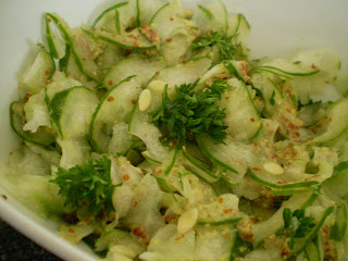 4 pepinos descascados, cortados ao meio no sentido longitudinal e depois em rodelas