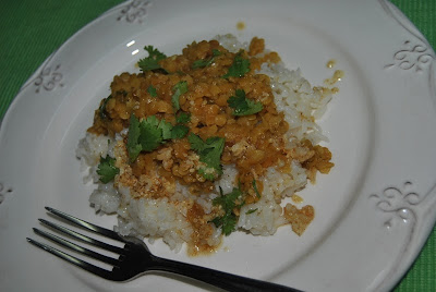 No prato coloca então as lentilhas sobre o arroz basmati e finaliza com o molho.