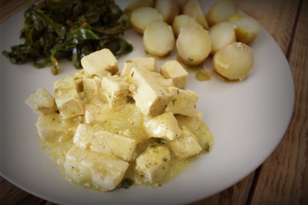 200 g de tofu com tempero de sua preferência e um pouco de vinho
