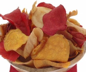 Pode fazer com as batatas descascadas ou não. Faça lâminas bem finas das batatas, com no máximo 2mm de espessura. Pode usar um aparelho tipo mandolim ou processador para fatiar.
