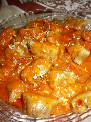 Depois de cozinhar todos os pedacinhos é só servir com o molho de tomate.
