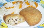 .. os croquetes foram nada mais nada menos que o resto do recheio dos rissóis ao qual adicionei um pouco mais de pão ralado e moldei com aquela forma, e depois passei por mais pão ralado!