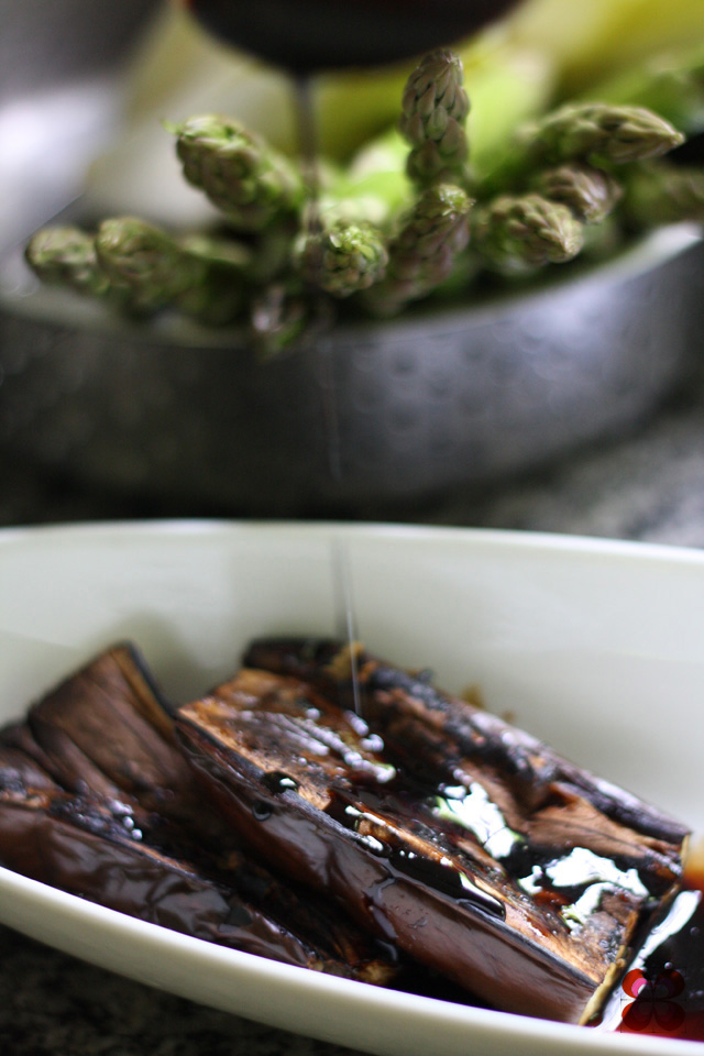 Corte os vegetais ao meio, ponha para grelhar; pincele os dois lados com mel ou vinagrete, pesto ou pesto de salsinha. Ou pincele com azeite.